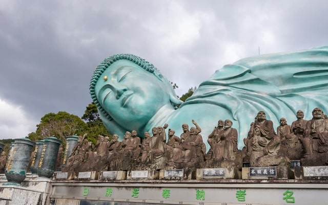 Chiêm ngưỡng bức tượng Phật nằm khổng lồ tại chùa Nanzoin – Nhật Bản sẽ là một trải nghiệm đầy ấn tượng và mang đậm ý nghĩa tâm linh. Bức tượng Phật này có chiều dài 41m, cao 11m và nặng khoảng 300 tấn, là một trong những bức tượng Phật bằng đồng lớn nhất thế giới. Khi đến gần, du khách không chỉ choáng ngợp bởi kích thước khổng lồ của tượng mà còn cảm nhận được rõ nét sự linh thiêng của nơi đây.